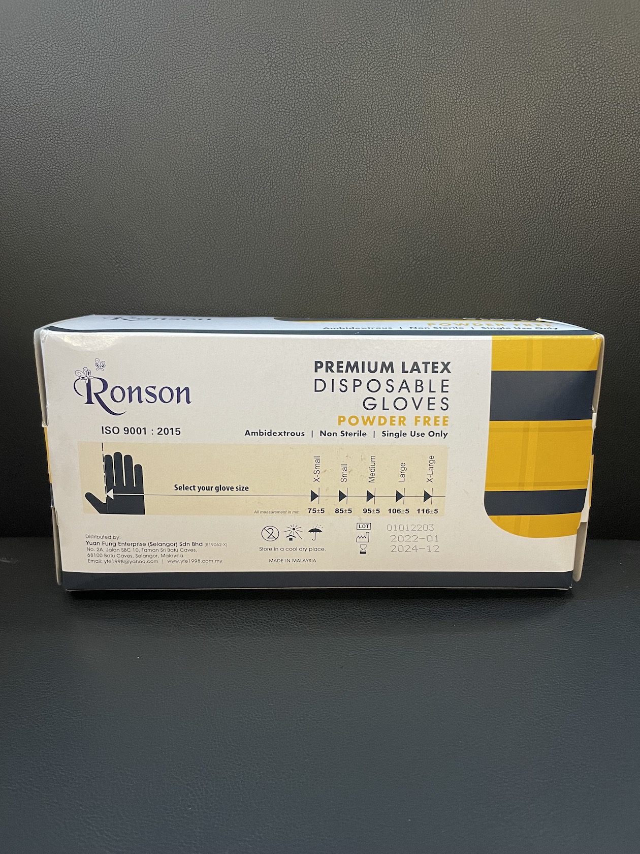 Ronson (100PCS) Powder Free Premium Latex Disposable Gloves #922000